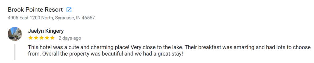 “This hotel was a cute and charming place! Very close to the lake. Their breakfast was amazing and had lots to choose from. Overall the property was beautiful and we had a great stay!” 5/5