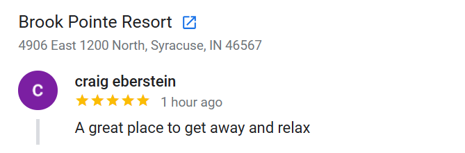 New review posted on Google today! October 16, 2025 Check out our newest review from Google posted today! “A great place to get away and relax.” 5/5 Related postsNovember 27, 2025New review posted on Google today!Read more